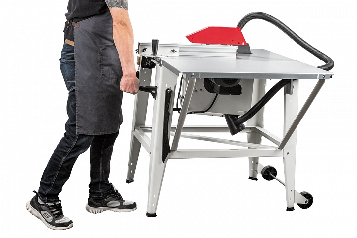 Важное достоинство JTS-315LA — большая (при установленном удлинителе 1650 мм) суммарная длина рабочих столов, позволяющая уверенно работать с длинными заготовками. Высокая мобильность (для транспортировки есть колеса и рукоятки) и достаточная мощность в сочетании с однофазным подключением позволяют рекомендовать эту пилу как для использования при строительстве, так и в качестве универсального циркулярного станка для мастерской. В последнем случае будет важно наличие полноценной системы пылеотсоса с разветвителем и забором опилок сверху и снизу диска.