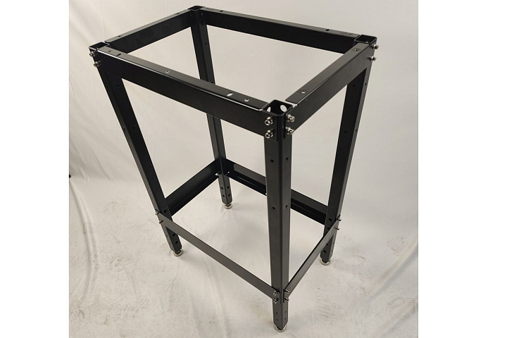 Конструкция – стальная сборная рама. Отверстия для крепления чугунного фрезерного стола JRT-1C или любого другого. В основания вертикальных стоек есть регулировочные ножки, ими можно отрегулировать высоту стола.