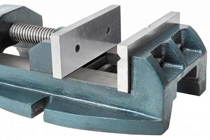 Губки тисков сменные, они хорошо закалены и отшлифованы. На одной из сторон губок есть V-образные пазы для качественного и аккуратного прижима цилиндрических заготовок в обеих плоскостях.